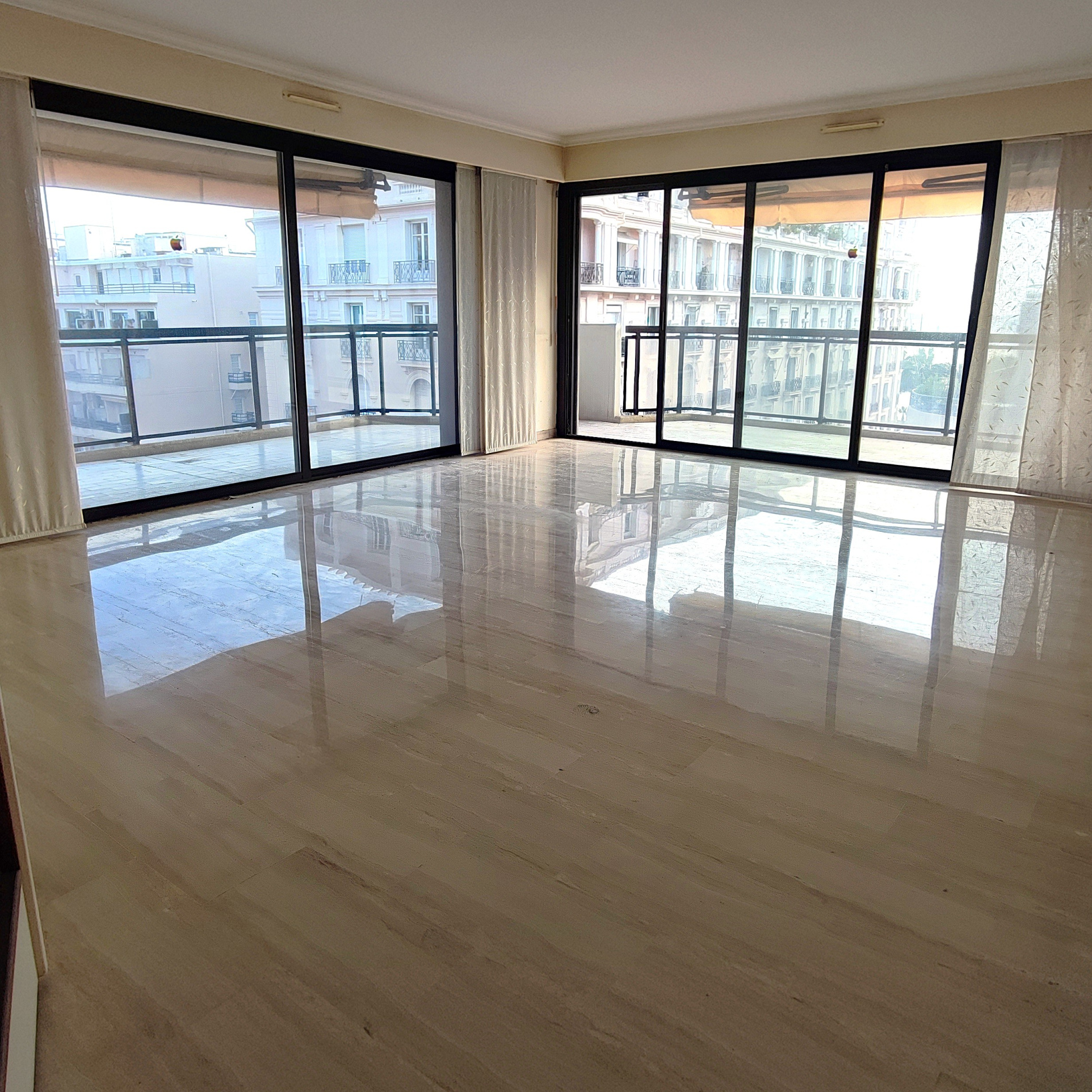 CANNES - BANANE, déuxieme ligne de la Croisette. En étage eleve d'une belle résidence de standing se trouve cet appartement en angle, Type 3p de 85 m2 avec maginfique terrasse d'angle de 40 m2 profitant d'une belle vue mer. Appartement à rénover. Une cave et un double garage en enfilade viennent à compléter ce bien. Infos au 0659347622